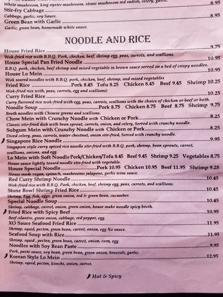 BBQ pork, chicken beef shrimp and mixed vegetarian in brown sauce served on bed of crispy noodles.