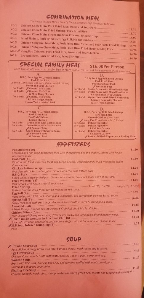 BBQ pork egg roll, fried shrimp, pork fried rice, lo mein, sweet and sour chicken.