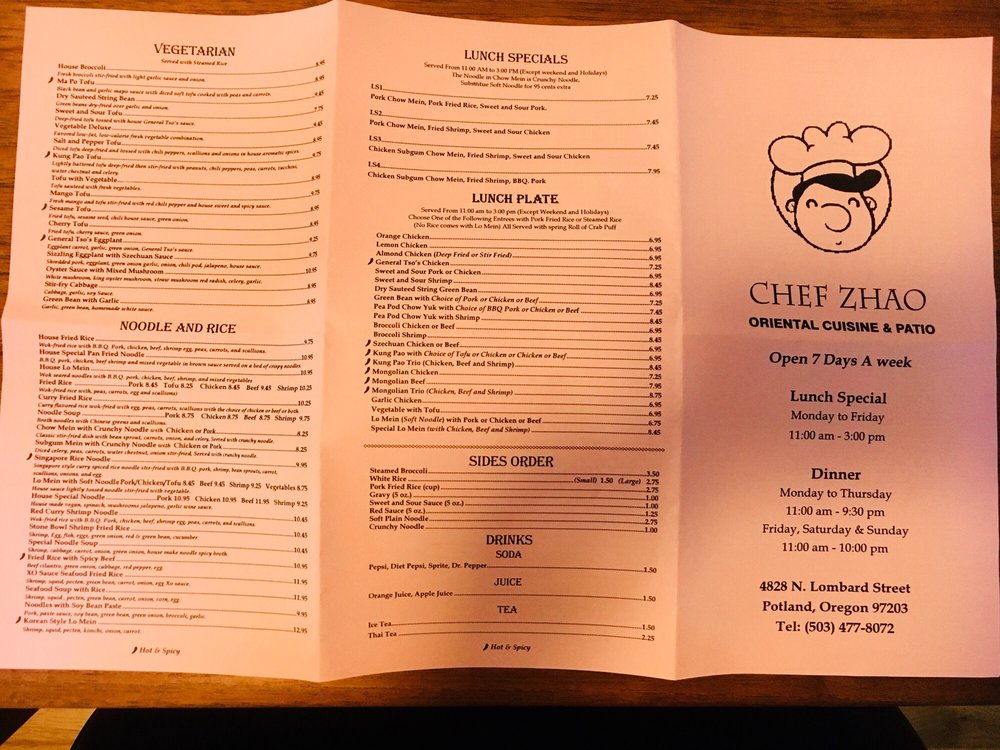 [Chef Zhao] offers a delightful Asian Fusion - Chinese dining experience in Portland, Oregon. Their menu features a wide array of dishes with many vegetarian options available. The restaurant provides various amenities such as delivery, takeout, reservations, outdoor seating, catering, and more. Customers rave about the excellent service and delicious food, with favorites like sesame beef, sautéed eggplant, Mapo tofu, and more. The consistently high-quality meals keep patrons coming back, with dishes like sesame chicken, orange chicken, and shrimp receiving high praise. Chef Zhao is known for its casual atmosphere, attentive service, and perfectly cooked dishes that are not overly seasoned. Whether you're dining in or ordering takeout, Chef Zhao promises a satisfying and memorable culinary experience for all.